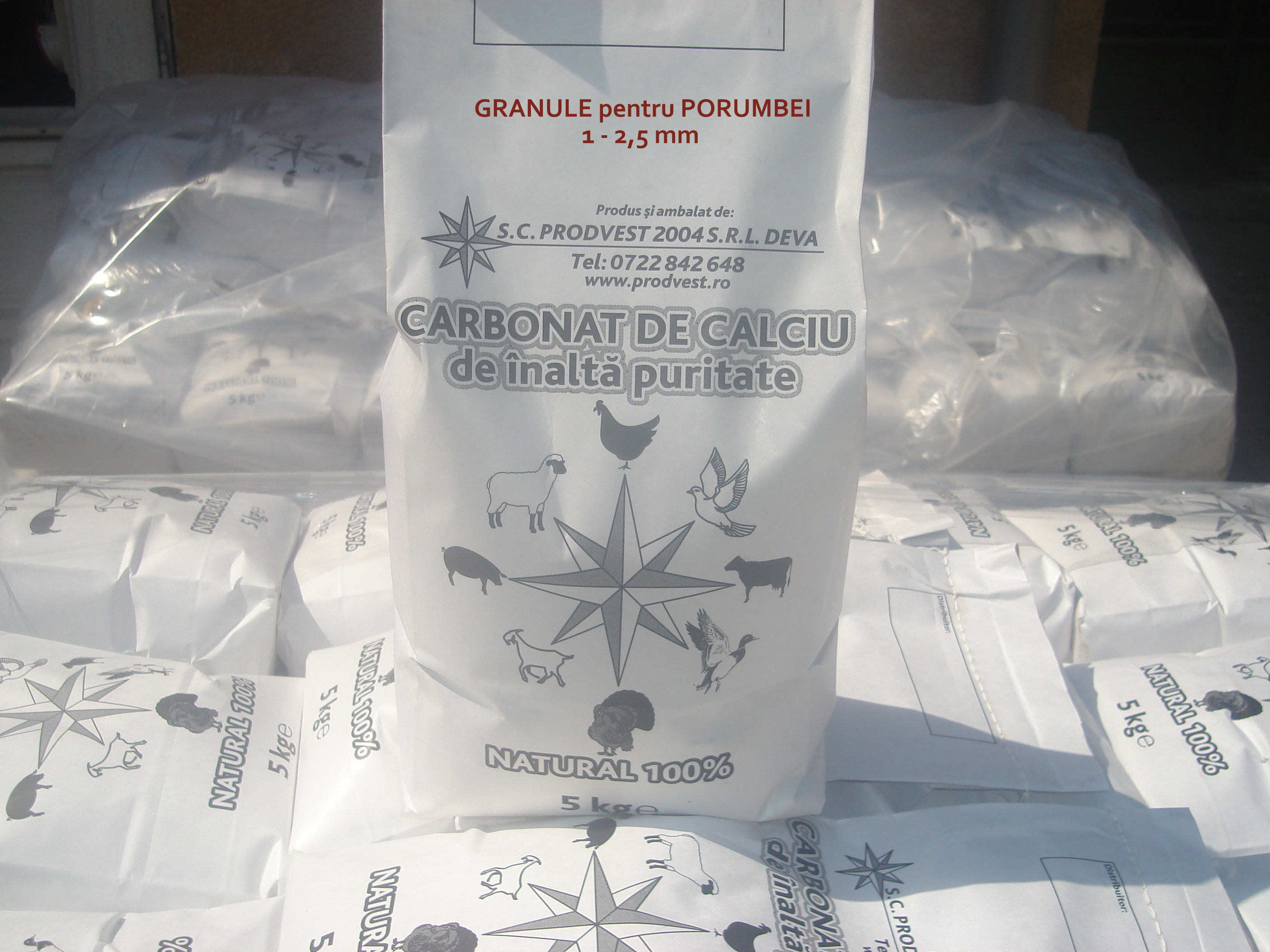 Oferim carbonat de calciu de inalta puritate furajer pentru amestec in furajarea pasarilor (gaini ouatoare, prepelite, curcani, pasari exotice, porumbei, etc.) si animalelor de ferma (bovine, porcine, ovine, caprine, etc.).